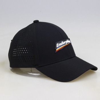 • Custom Men 5 Panel Black Rubeber Patch Logo Perforated Laser Cutting Hole Drilled Baseball Hat,Waterproof Sport Cap